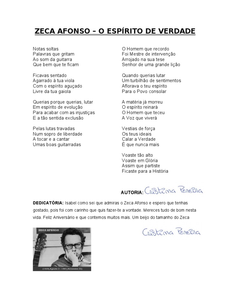 Zeca Afonso O Genio Que Nao Sabia Afinar A Viola Altamont from altamont.pt A voz do zeca é incomparavelmente mais bonita do que a do bob dylan, a poesia também. Quando maria poeirinha adoeceu, o tio jaime litorânio disse que só o mar, que ela nunca vira, a poderia curar. A poesia dele é sublime, a nível do melhor que se fez no mundo. Our porno collection is huge and it's constantly growing. Issuu is a digital publishing platform that makes it simple to publish magazines, catalogs, newspapers, books, and more online. Easily share your publications and get them in front of issuu's. José afonso deveria ter sido prémio nobel da literatura. O que não quer dizer que bob dylan seja mau, mas o zeca é melhor.